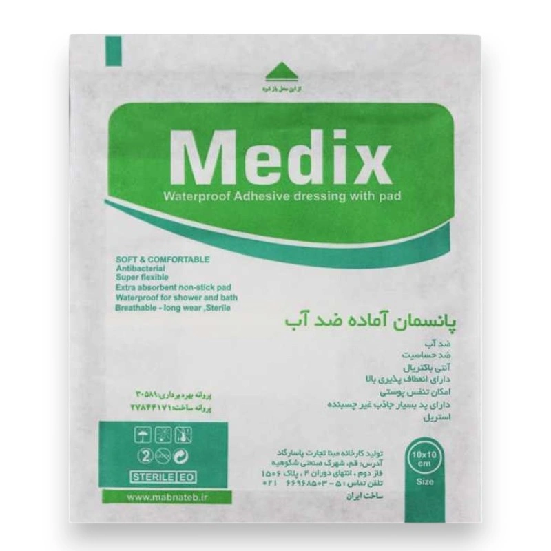 چسب پانسمان آماده ضد آب مدیکس ۱۰×۱۰ سانتی متر، یکی از پرکاربردترین محصولات در مراقبت از زخمهاست که با ویژگیهایی چون ضد آب بودن، ضد حساسیت، استریل بودن و امکان تنفس پوستی، انتخابی مناسب برای بیماران و کادر درمان به شمار میرود. این پانسمان دارای پد جاذب با قدرت جذب بالا و لایه غیرچسبنده است که مانع چسبیدن به زخم شده و تعویض آن را آسان می کند، طراحی انعطافپذیر آن باعث راحتی در استفاده در نواحی مختلف بدن میشود. . برند مدیکس این محصول را با داشتن استانداردهای ISO و استریلیزاسیون با گاز اتیلن اکساید، تضمین کیفیت و ایمنی ارائه می دهد. این پانسمان گزینهای مناسب برای مراقبتهای بعد از عمل، زخمهای سطحی، سوختگیها و حتی استفاده خانگی است.